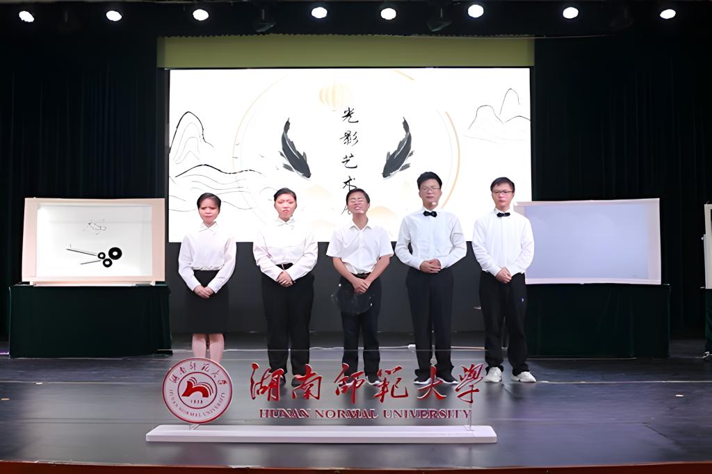 熊舉峰老師團隊項目作為2022年湖南省唯一推薦項目參加全國科學實驗展演匯演,該項目也是全國科學實驗展演匯演活動開展以來,湖南省唯一一個進入決賽的項目。為了使表演更具特色和趣味,巧妙地將我國非物質文化遺產“皮影”加入實驗中。設計過程遵循科學性、趣味性、易操作性、可觀賞性,表演環節由古至今、由易到難,給觀眾帶來身臨其境般的審美體驗。