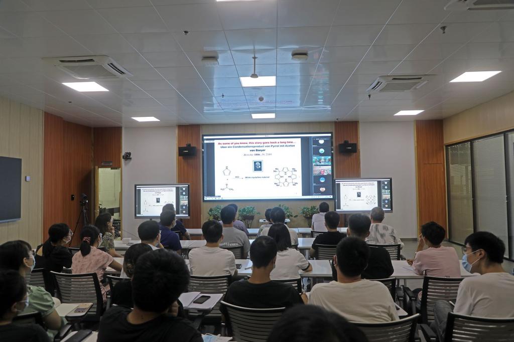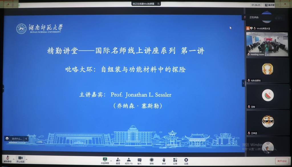 喬納森·塞斯勒教授以“吡咯大環(huán):自組裝與功能材料中的探險(xiǎn)”為題進(jìn)行講授,并對(duì)同學(xué)們提出的問(wèn)題進(jìn)行解答。