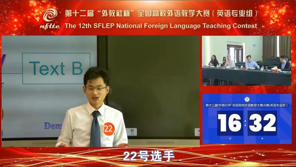 (供稿 外國語學(xué)院)2022年9月23-25日,第十二屆“外教社杯”全國高校外語教學(xué)大賽全國總決賽圓滿落幕。經(jīng)過三天的激烈角逐,我校外國語學(xué)院英語系青年教師楊雨簫博士榮獲英語專業(yè)組全國一等獎的第一名。此次比賽由上海外國語大學(xué)主辦,上海外語教育出版社承辦,線上收看人數(shù)達十萬。該項賽事是我國最早舉辦、影響力最大的全國性外語類教學(xué)大賽。