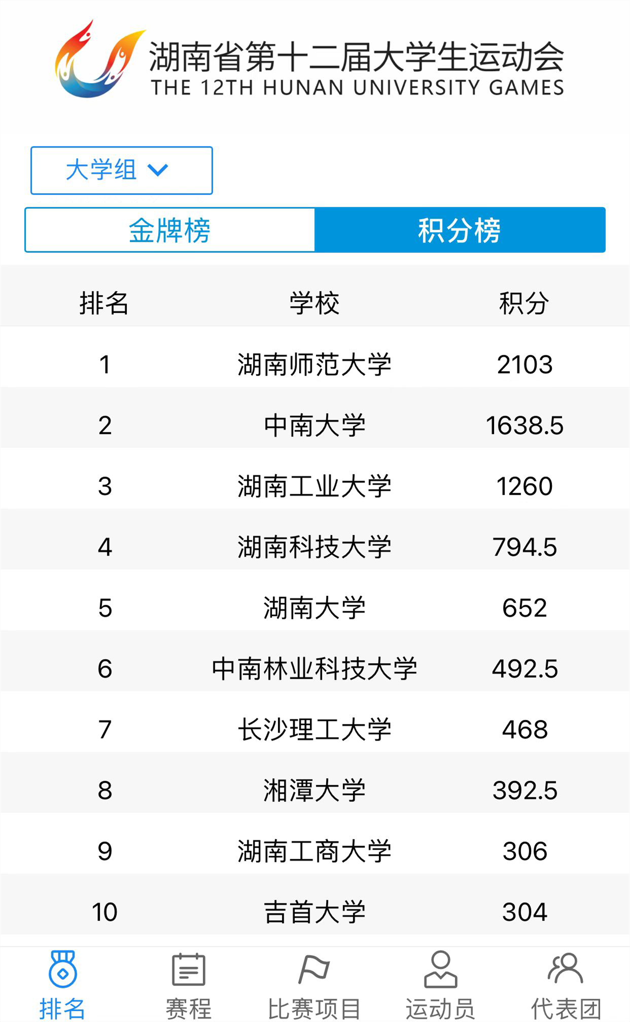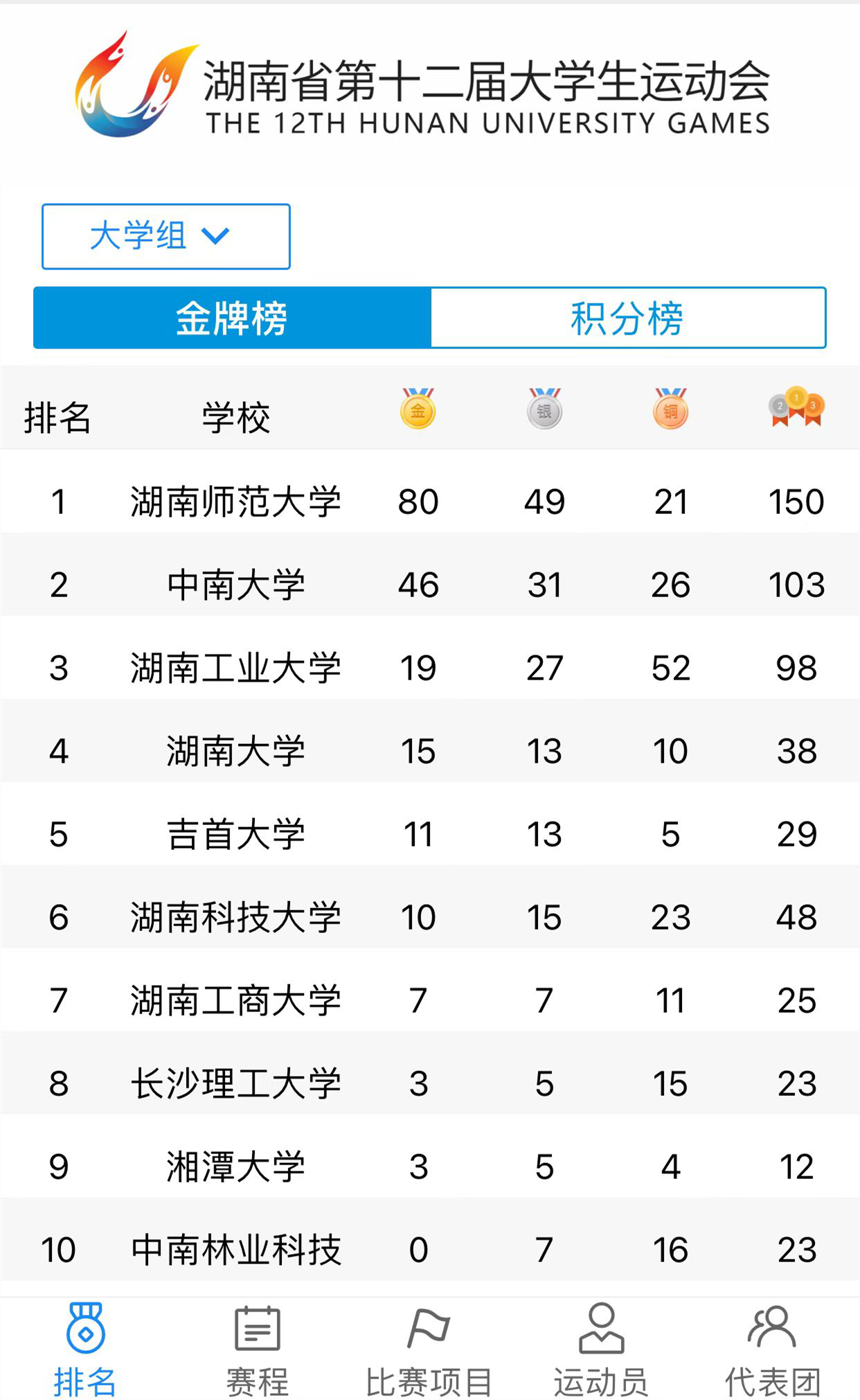 (通訊員 胡雨雯)9月30日,由湖南省教育廳主辦,湖南理工學(xué)院承辦,湖南省學(xué)生體育協(xié)會(huì)、湖南省大學(xué)生籃球協(xié)會(huì)、湖南省高等學(xué)校體育教學(xué)指導(dǎo)委員會(huì)協(xié)辦的湖南省第十二屆大學(xué)生運(yùn)動(dòng)會(huì)落下帷幕。我校代表隊(duì)參加了運(yùn)動(dòng)會(huì)全部項(xiàng)目,共十三個(gè)大項(xiàng),以獲80枚金牌、49枚銀牌、21枚銅牌,總積分2103分的絕對(duì)優(yōu)勢(shì)奪得團(tuán)體總分第一名,金牌及獎(jiǎng)牌總數(shù)位列大學(xué)組第一;并在省大運(yùn)會(huì)重要組成部分的科學(xué)大會(huì)上獲團(tuán)體總分第一。最終,我校以總分排名第一的成績奪得“校長杯”,并獲“優(yōu)秀代表團(tuán)”稱號(hào)。我校副校長劉子蘭參加閉幕儀式,并代表學(xué)校上臺(tái)領(lǐng)獎(jiǎng)。