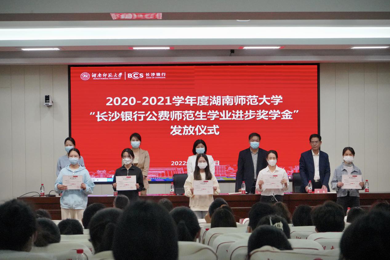 (通訊員 高遠矚 胡典奕 何伊婷 曾靖雯 楊予曦)10月18日下午,我校2020-2021學年度“長沙銀行公費師范生學業進步獎學金”頒發儀式于中和樓中和講堂舉行。長沙銀行股份有限公司黨委委員、副行長張曼,我校副校長王輝出席儀式。儀式由學生工作部部長向發意主持。