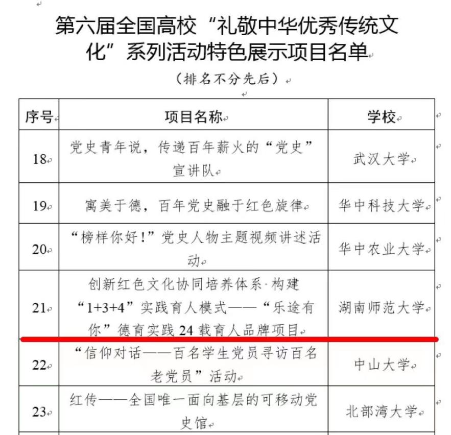 據悉,我校“樂途”志愿服務團隊成立于1997年,25年來緊扣紅色文化傳承傳播這一主線,利用校區、社區、景區等三區實踐平臺,打造了“講學課堂、實地課堂、網絡課堂、實踐課堂”四類紅色課堂,形成了“1+3+4”紅色文化實踐育人模式,項目團隊曾榮獲中國旅游局“四個一批”旅游志愿服務先鋒組織、團中央“七彩四點半”志愿服務項目示范實施團隊、中國旅游影響力院校社會實踐項目TOP10、湖南省青年志愿服務大賽金獎、湖南省芙蓉學子社會實踐獎、湖南省高校大學生德育實踐項目等榮譽稱號,報送的紅色文化育人模式工作案例榮獲第五屆高校網絡教育優秀作品全國一等獎。