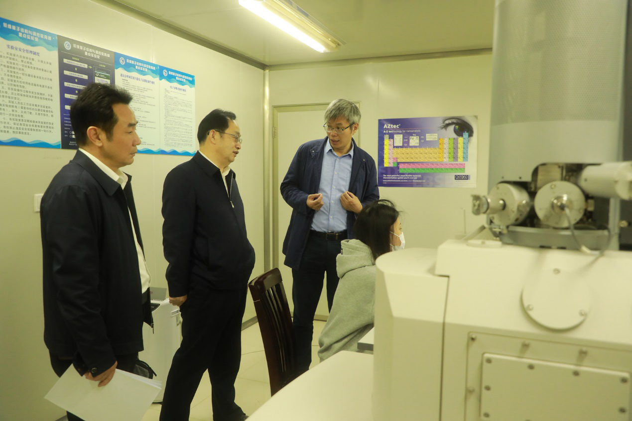 魯先華一行在物理與電子科學學院院長唐東升、地理科學學院副院長李忠武等人的引導下先后參觀了量子樓與地理科學學院的部分實驗室,深入了解洞庭湖沉積有機碳來源對土壤侵蝕的響應及土地利用優化調控項目(獲2019年國家區域創新發展聯合基金資助)、電化學制氫和用氫關鍵催化材料與器材項目(獲2021年省基礎研究類“揭榜掛帥”資助)的研究進展和科研成果。