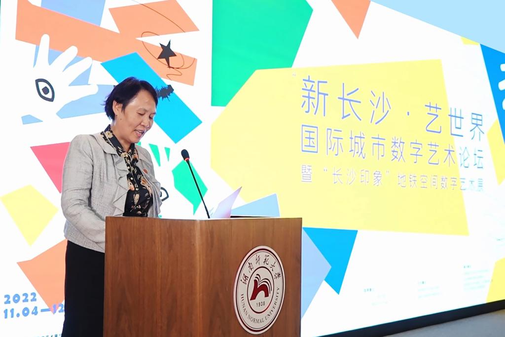 謝資清向與會來賓介紹了本次活動的組織情況,并認為本次活動實現(xiàn)了科技與藝術、學校與社會、國內(nèi)與國外、城市與鄉(xiāng)村的鏈接,是“數(shù)字人文”與“美育精神”融合服務長沙城市文化建設的創(chuàng)新之舉。她強調(diào)作為湖南省屬高校的排頭兵,我校將進一步推進校城融合工作,通過學校團隊的深度介入,賦能城市創(chuàng)新發(fā)展,開創(chuàng)教育、文化、商業(yè)和社會融合的創(chuàng)新模式,切實實現(xiàn)服務社會、服務公眾的目標。