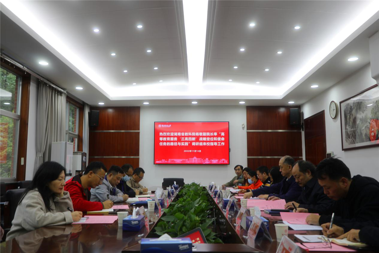 (記者 肖曄 易璇)11月14日下午,省教科院副院長楊敏率“高等教育服務(wù)‘三高四新’戰(zhàn)略定位和使命任務(wù)的路徑與實(shí)踐”課題組來我校調(diào)研。副校長楊震出席調(diào)研座談會。會議由發(fā)展規(guī)劃與學(xué)科建設(shè)處副處長孫雄輝主持。