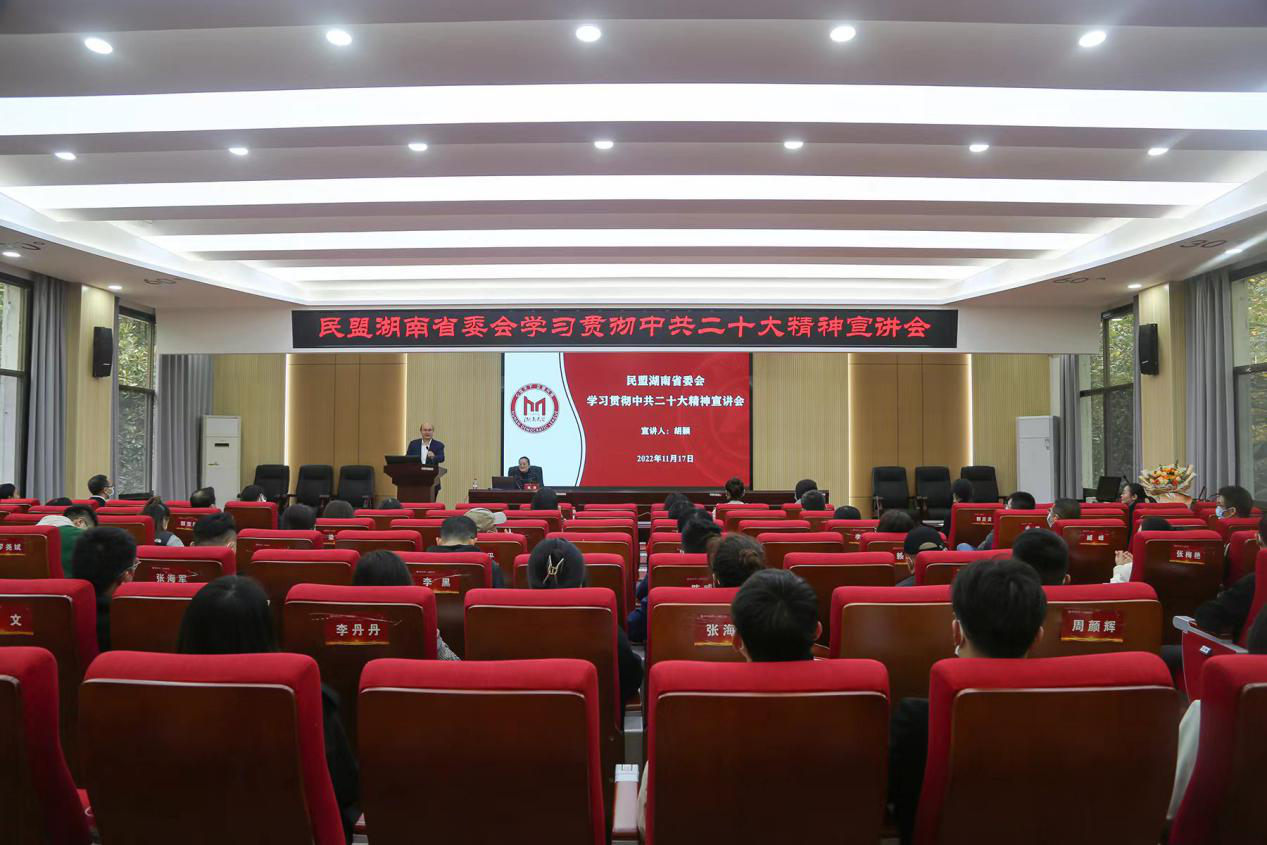 (記者 李欣茹 李鑫)11月17日上午,民盟湖南省委會學(xué)習(xí)貫徹中共二十大精神宣講會在我校地理科學(xué)學(xué)院報告廳舉行,湖南省政協(xié)副秘書長、民盟湖南省委會專職副主委胡穎作主題為《深入學(xué)習(xí)領(lǐng)會中共二十大精神的重要意義》宣講報告。校黨委委員、黨委統(tǒng)戰(zhàn)部部長楊念主持報告會。
