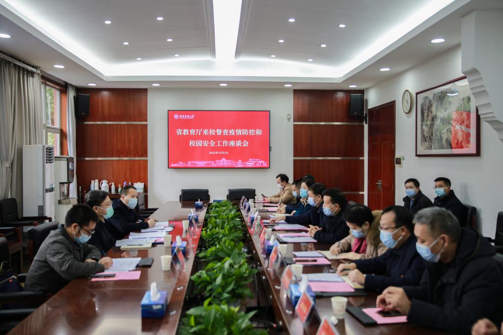 (記者 馬鐵泉 馮振輝)12月2日,湖南省委教育工委委員、湖南省教育廳黨組成員、省紀委監委駐省教育廳紀檢監察組組長曾市南一行來我校就疫情防控及校園安全等各項工作情況進行現場督查并舉行座談會。我校黨委書記蔣洪新,副校長王輝、謝資清等陪同督查。座談會由蔣洪新主持。