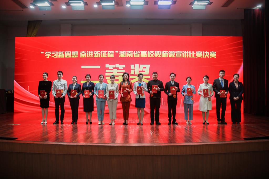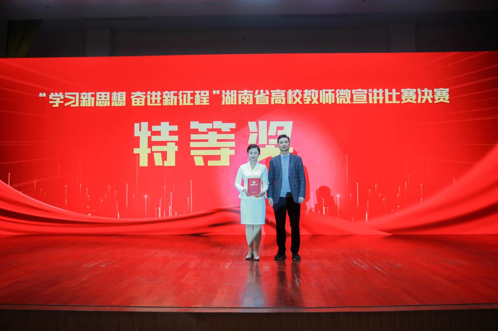 (通訊員 苗鑫雨 記者 馮振輝 劉偲睿 李睿)在全國上下深入學習貫徹黨的二十大精神之際,根據省委教育工委、省教育廳有關安排,3月18日上午,“學習新思想 奮進新征程”湖南省高校教師微宣講比賽決賽在我校國際學術報告廳舉行。湖南省委教育工委宣傳部副部長曾思亮,我校黨委副書記周俊武、副校長王輝出席活動。