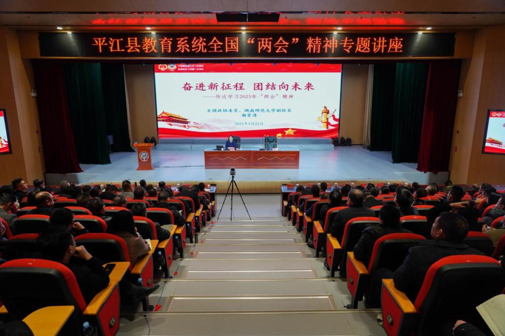 (供稿 頤華學校)3月21日,平江縣教育系統(tǒng)全國“兩會”精神專題講座在頤華學校舉行,第十四屆全國政協(xié)委員、我校副校長謝資清受邀作專題宣講。平江縣人民政府辦公室副主任王永祥主持宣講會。