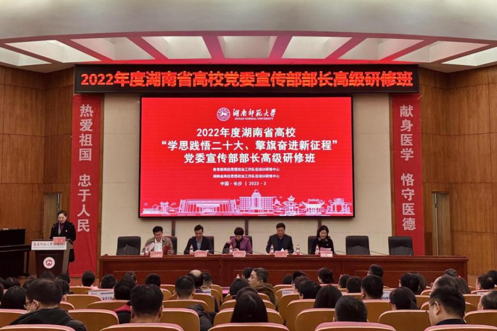 (通訊員 周鴻渝 高遠矚 賀文卓)3月27日上午,2022年度湖南省高校黨委宣傳部部長高級研修班在我校醫學院仁醫樓報告廳舉行。省委教育工委、省教育廳一級巡視員羅桂香,省委教育工委宣傳部副部長曾思亮,我校副校長王輝出席開班儀式。