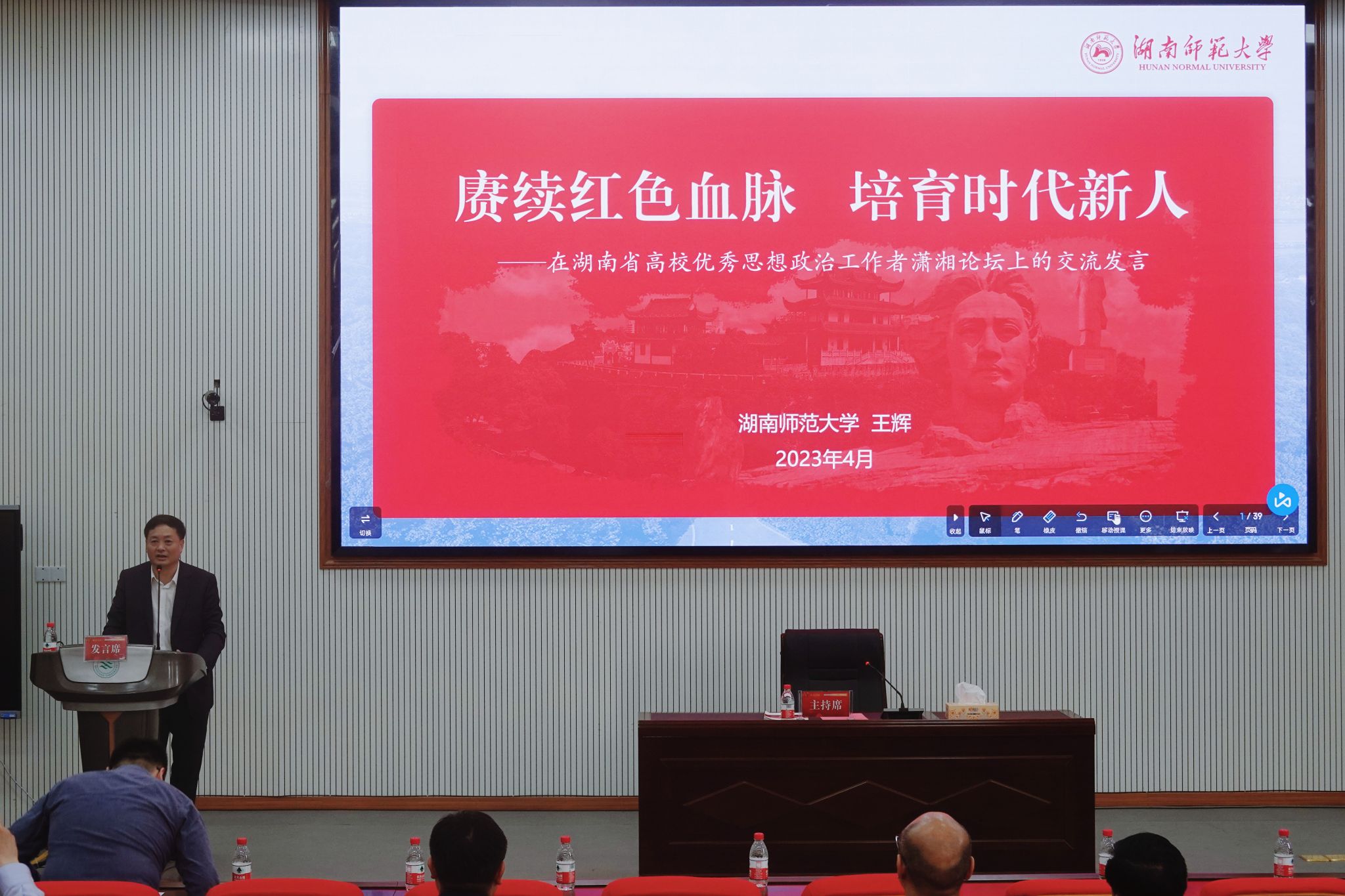 王輝以“賡續紅色血脈培育時代新人”為題作交流發言。他指出,一是著眼素質能力培育,建好思想引領的隊伍;二是擦亮紅色育人品牌,上好主題教育的課堂;三是聚焦為黨育人使命,當好立德樹人的先生。通過打造一個有優良師資、有特色課程、有優秀成果、有育人實效與影響力的思想政治工作團隊,夯實麓山紅色文化育人路徑,讓學生更好賡續紅色血脈,成為時代新人。