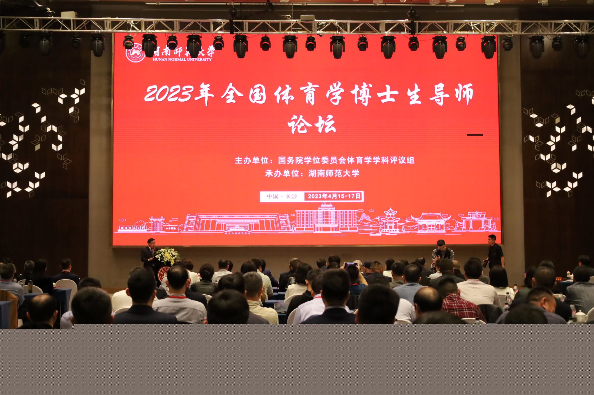 (通訊員 孫意遠)4月16日上午,由國務院學位委員會體育學學科評議組主辦,我校承辦的2023年全國體育學博士生導師論壇在長沙召開。國務院學位委員會體育學學科評議組召集人陳佩杰,省教育廳副廳長左清,中國科學院院士蘇國輝,我校黨委書記蔣洪新出席開幕式。開幕式由我校副校長劉懷德主持。