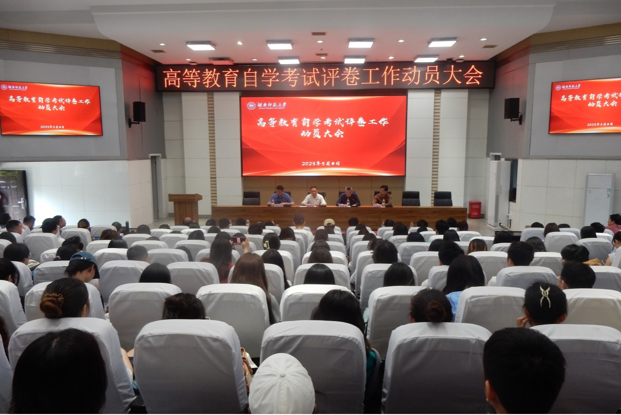 省教育考試院自考處處長皮祖遷、我校相關職能部門人員及評卷工作人員等500余人參加會議。