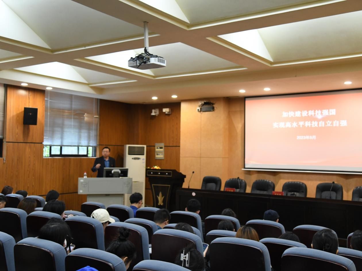 劉懷德以“加快建設(shè)科技強(qiáng)國,實(shí)現(xiàn)高水平科技自立自強(qiáng)--學(xué)習(xí)習(xí)近平關(guān)于科技工作的重要論述”為題,從新時(shí)代中國科技取得的新的歷史成就、實(shí)現(xiàn)高水平科技自立自強(qiáng)的意義以及如何實(shí)現(xiàn)高水平科技自立自強(qiáng)三方面進(jìn)行闡述。他指出,新時(shí)代中國科技取得了許多新的歷史成就,而實(shí)現(xiàn)高水平科技科技自立自強(qiáng)是為了更好地推動(dòng)高質(zhì)量發(fā)展、滿足人民對美好生活的向往、維護(hù)國家主權(quán)、安全、發(fā)展利益,增進(jìn)人類福祉。因此,我們應(yīng)該加強(qiáng)原創(chuàng)性、引領(lǐng)性科技攻關(guān),堅(jiān)決打贏關(guān)鍵核心技術(shù)攻堅(jiān)戰(zhàn);強(qiáng)化國家戰(zhàn)略科技力量,提升國家創(chuàng)新體系整體效能;推進(jìn)科技體制改革,形成支持全面創(chuàng)新的基礎(chǔ)制度;構(gòu)建開放創(chuàng)新生態(tài),參與全球科技治理;激發(fā)人才創(chuàng)新活力,建設(shè)全球人才高地;構(gòu)建自立自強(qiáng)的創(chuàng)新體系。他希望,音樂學(xué)院的師生志存高遠(yuǎn),積極探索,將科技與音樂融合,推動(dòng)學(xué)校教育教學(xué)高質(zhì)量發(fā)展,創(chuàng)造更加美好的未來。