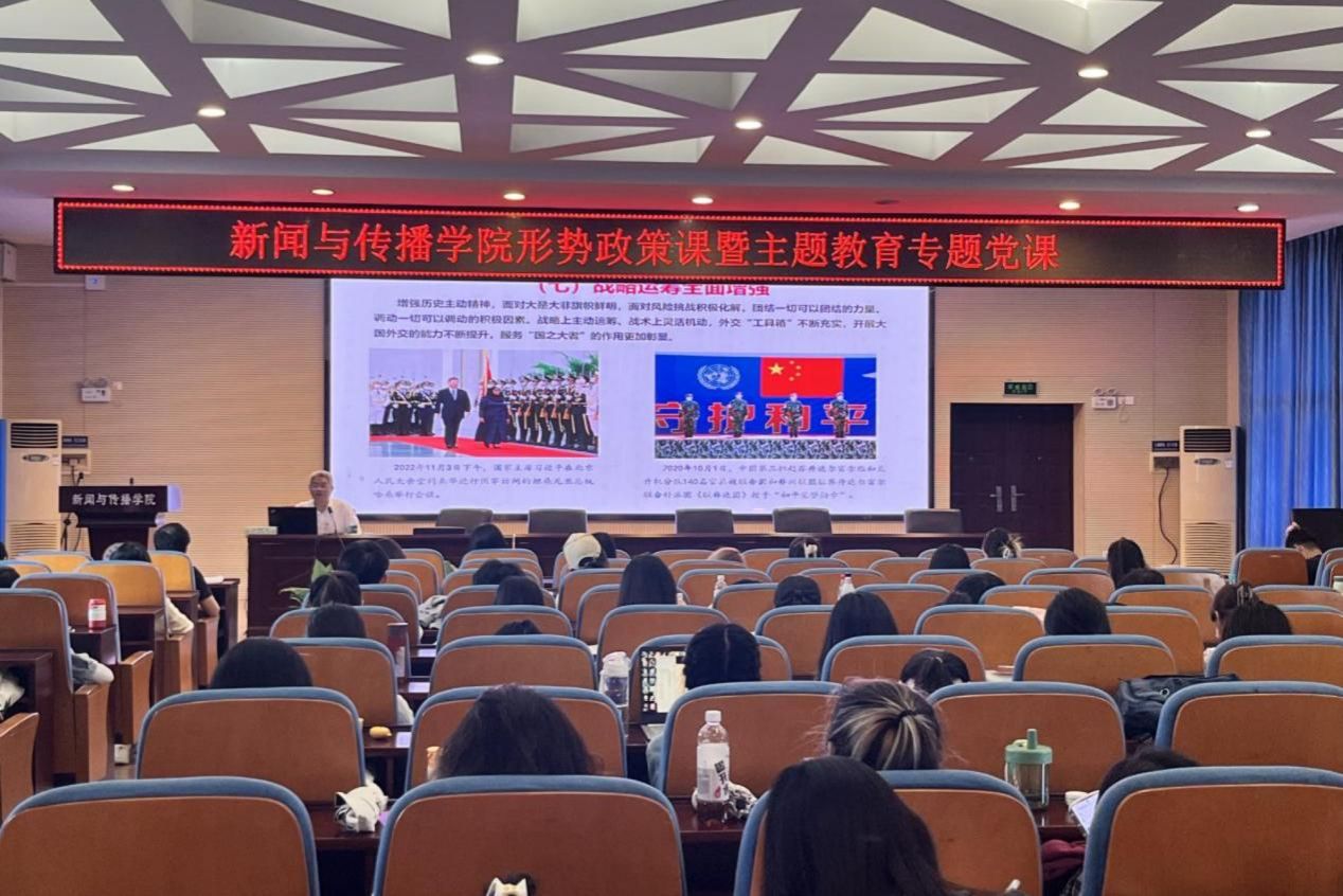(通訊員 魏唯 陳紅旭)5月18日下午,副校長唐賢清教授為新聞與傳播學院師生講授了以“新時代中國特色大國外交回眸與展望”為主題的形勢與政策課暨主題教育專題黨課。黨課由新聞與傳播學院黨委書記沈賢嵐主持。
