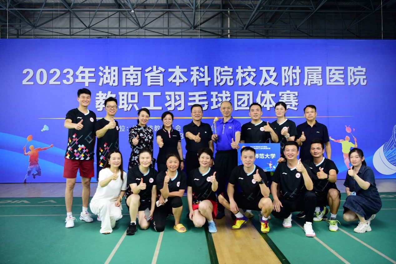 (供稿 校工會)5月30日至31日,由省教育工會主辦的2023年湖南省本科院校及附屬醫(yī)院教職工羽毛球團體賽在湖南人民體育場舉行。經(jīng)過多輪激烈角逐,我校代表隊榮膺冠軍,實現(xiàn)了我校在該項賽事成績的歷史性突破。省總工會黨組成員、省教育工會主席劉湘凌為我校代表隊頒獎。