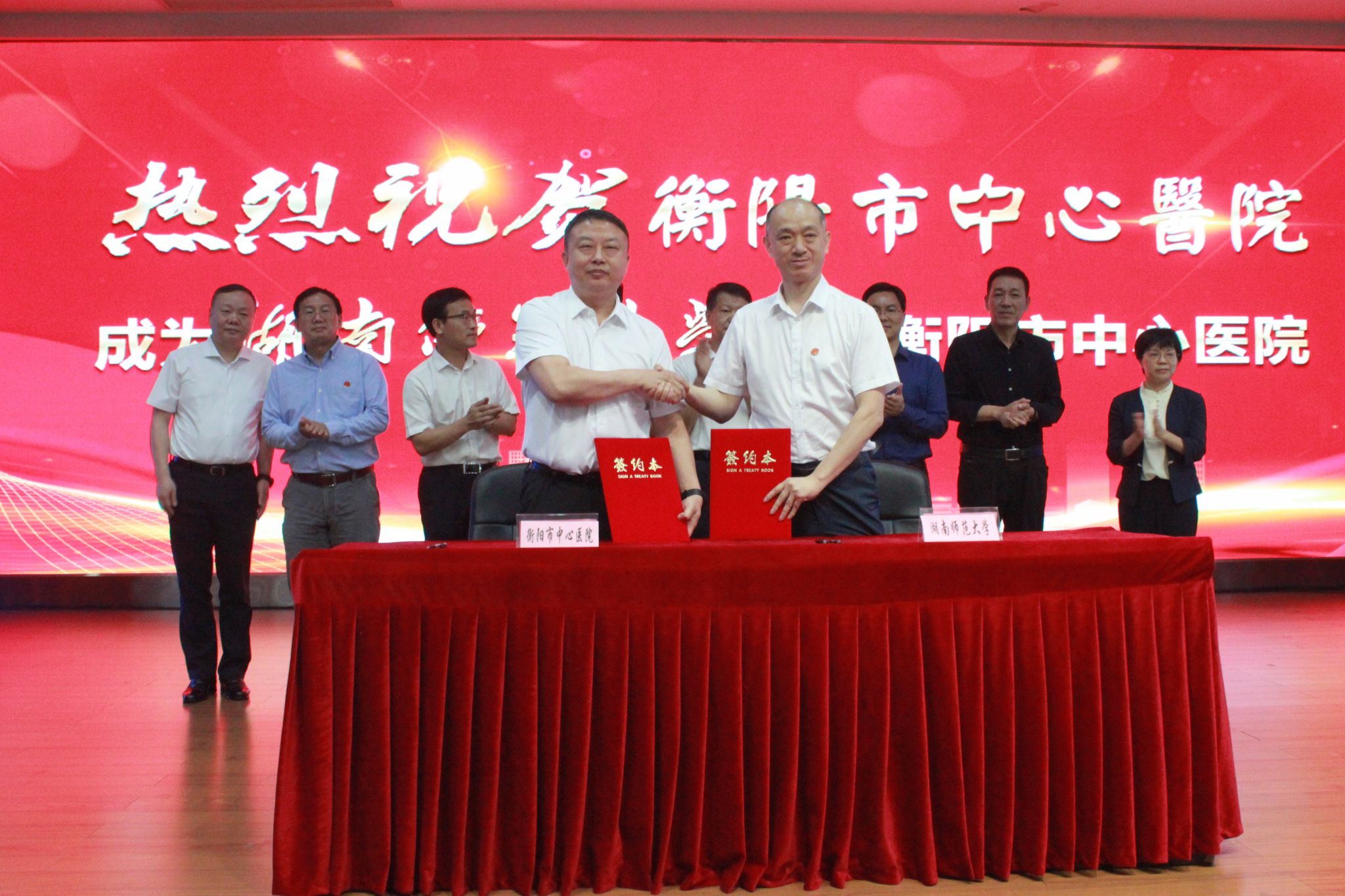 會上,楊震與尹軍共同簽署《湖南師范大學(xué)衡陽市中心醫(yī)院戰(zhàn)略合作框架協(xié)議》,楊震代表我校授牌,尹軍代表衡陽市中心醫(yī)院接牌。