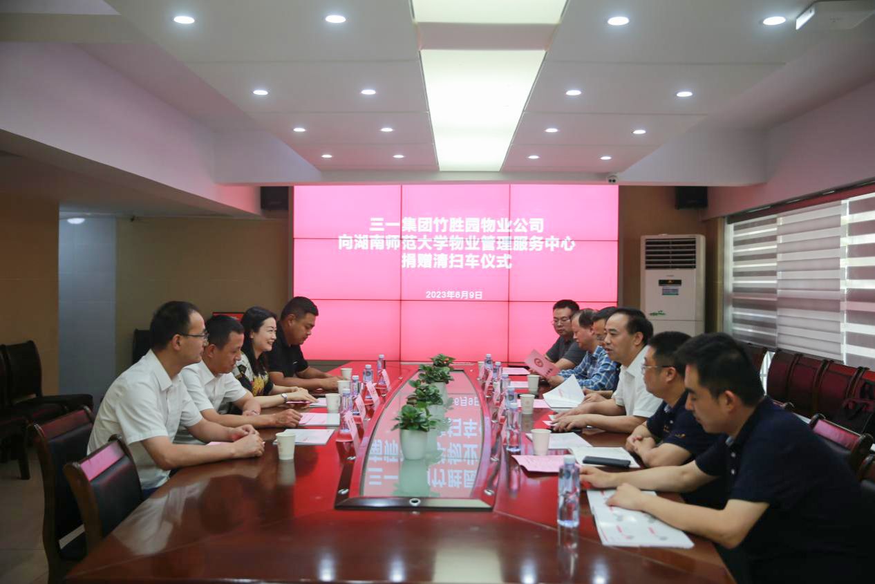 劉懷德代表我校向三一集團竹勝園物業服務有限公司的捐贈與支持表示感謝。他介紹了三一集團與我校在基礎教育、人才培養上的基本情況。他表示,三一集團竹勝園物業服務有限公司此次的捐贈凸顯了三一集團回饋社會、重視教育的情懷,極大提升了我校后勤管理服務的機械化作業水平,同時,也要求相關職能部門充分使用好、管理好捐贈的清掃車。