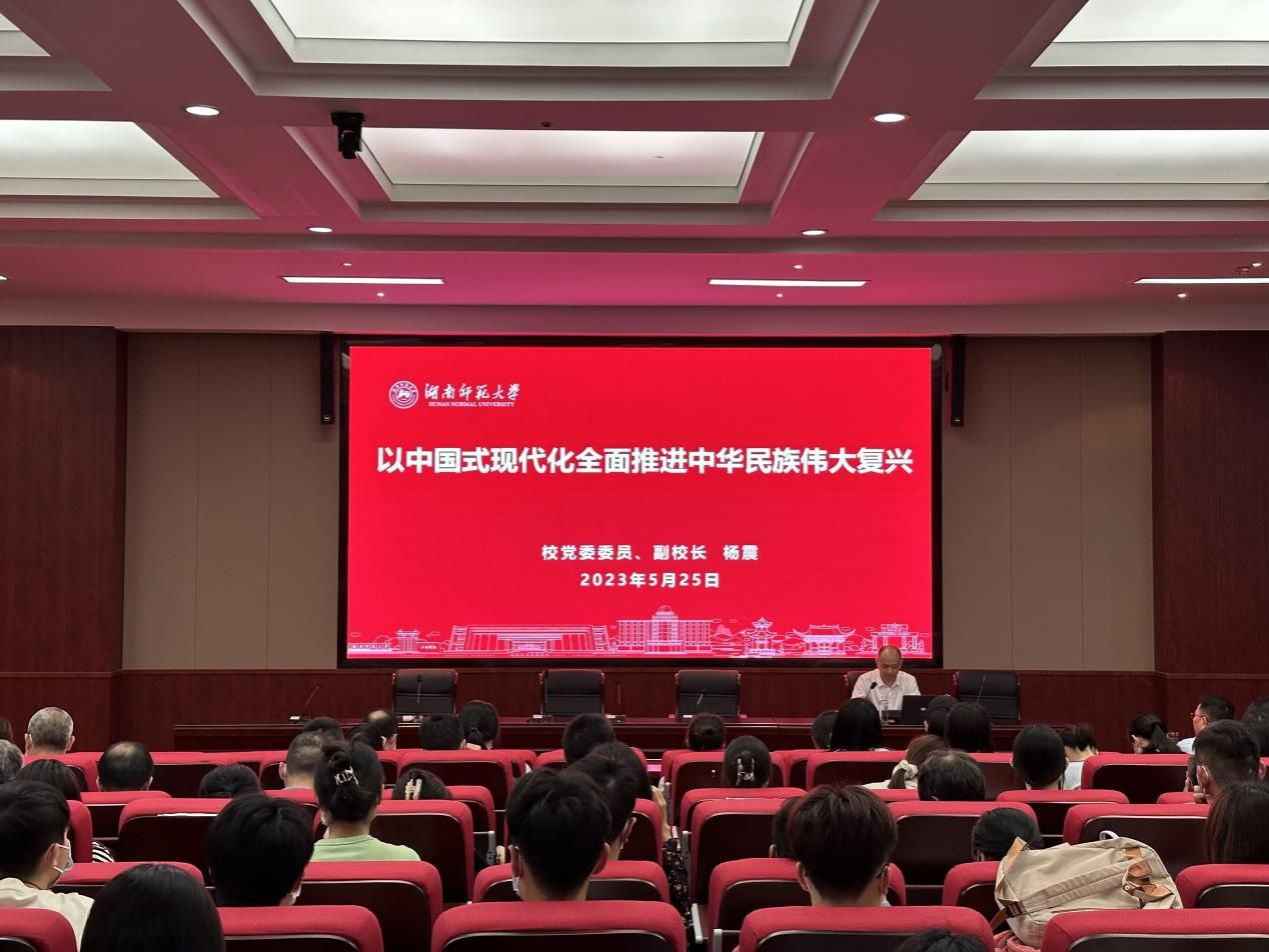 楊震圍繞“為什么需要中國式現代化”“什么是中國式現代化”“怎樣以中國式現代化全面推進中華民族偉大復興”三個方面的問題,通過分析中國式現代化所應對的五項中國特色、三大本質要求和五類重大原則,對課題進行了深入闡釋。他指出,中國式現代化是實現中華民族偉大復興的光明大道,廣大師生要進一步加強理論學習和實踐創新,不斷拓展中國式現代化的廣度和深度,全面推進強國建設、民族復興。