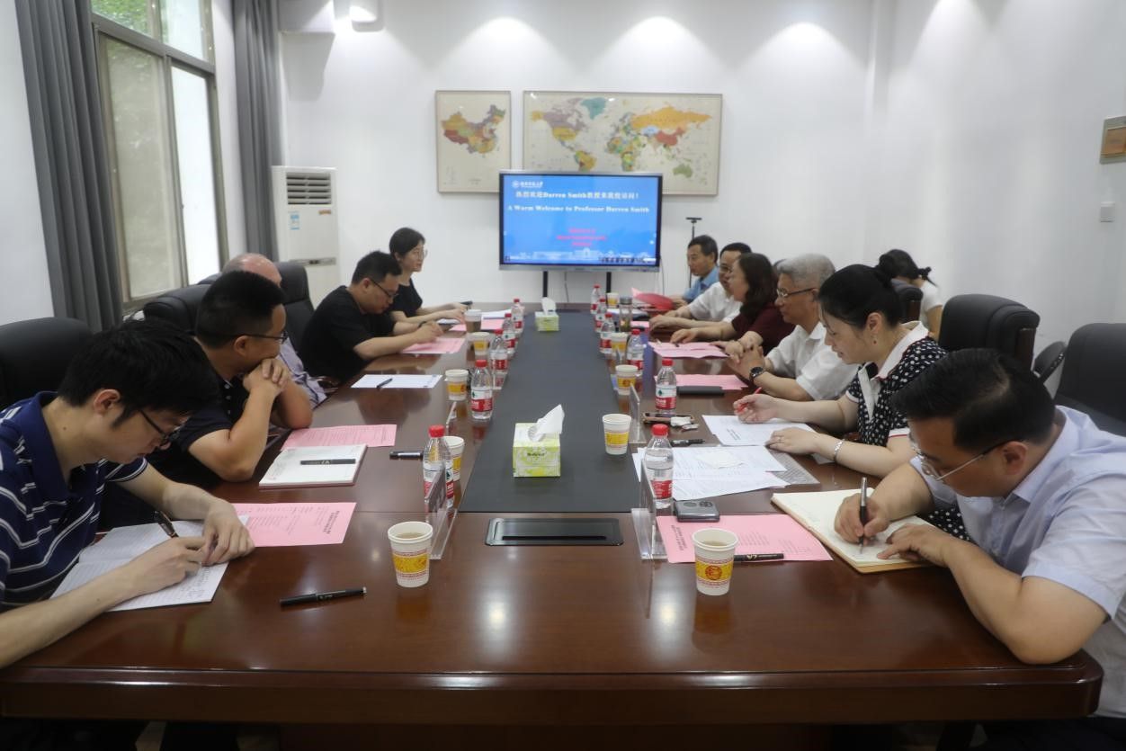 唐賢清致歡迎辭,他代表我校對Smith教授的到來表示歡迎并從我校辦學(xué)歷史、辦學(xué)規(guī)模,我校與英國高校學(xué)術(shù)交流、高等教育合作的國際交流歷史與情況等方面做了介紹。他誠摯邀請教授加盟我校,并展望了未來兩校間的合作。他強(qiáng)調(diào),希望兩校能攜手共進(jìn),進(jìn)一步加強(qiáng)師生交流與合作,共同推進(jìn)中英學(xué)術(shù)界發(fā)展,加深中英之間的教育交流。