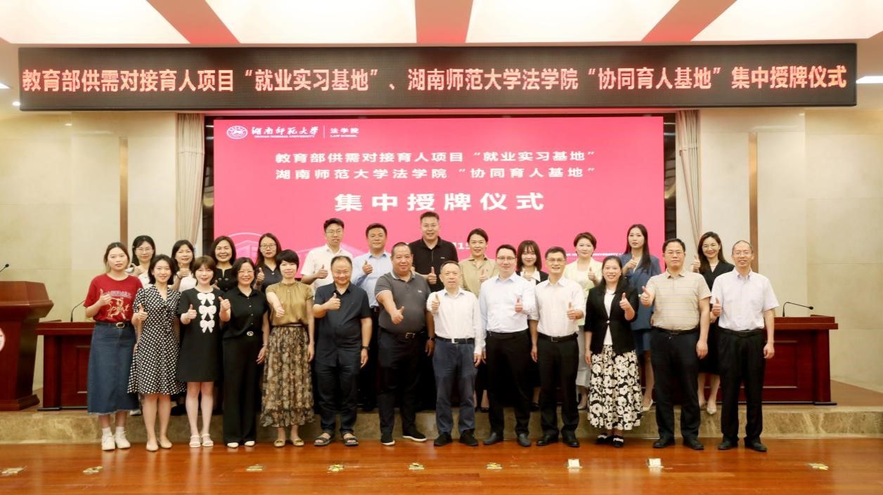 北京大成(長沙)律師事務所、北京盈科(深圳)律師事務所、上海蘭迪(長沙)律師事務所、寧鄉市人民法院、長沙市芙蓉區人民法院、北京市中聞(長沙)律師事務所、北京中倫文德(長沙)律師事務所、湖南弘一律師事務所、湖南天地人律師事務所、湖南金厚律師事務所、湖南師大知識產權運營有限公司等單位代表及法學院相關負責人參加授牌儀式。