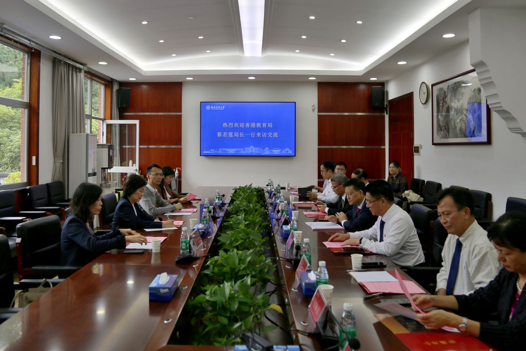 (記者 馬鐵泉 黃依依)9月22日下午,香港教育局局長蔡若蓮一行赴我校調(diào)研交流,座談會在校辦二樓會議室舉行。校黨委書記蔣洪新出席會議,會議由副校長唐賢清主持。
