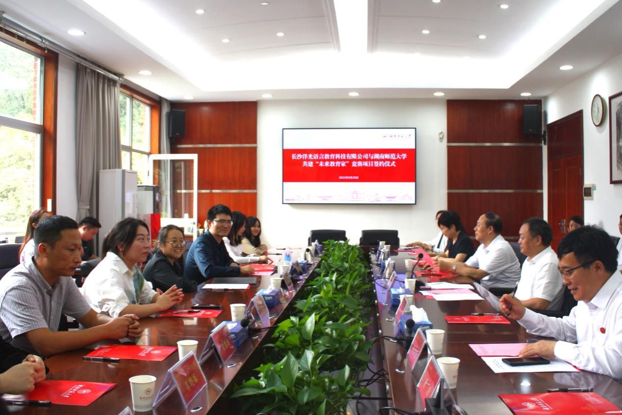 (通訊員 向思潤 陸波濤)9月28日上午,長沙洋光語言教育科技有限公司與我校共建“未來教育家”競賽項目簽約儀式舉行,公司董事長劉紅平、我校副校長王輝出席。儀式由學生工作部部長向發(fā)意主持。