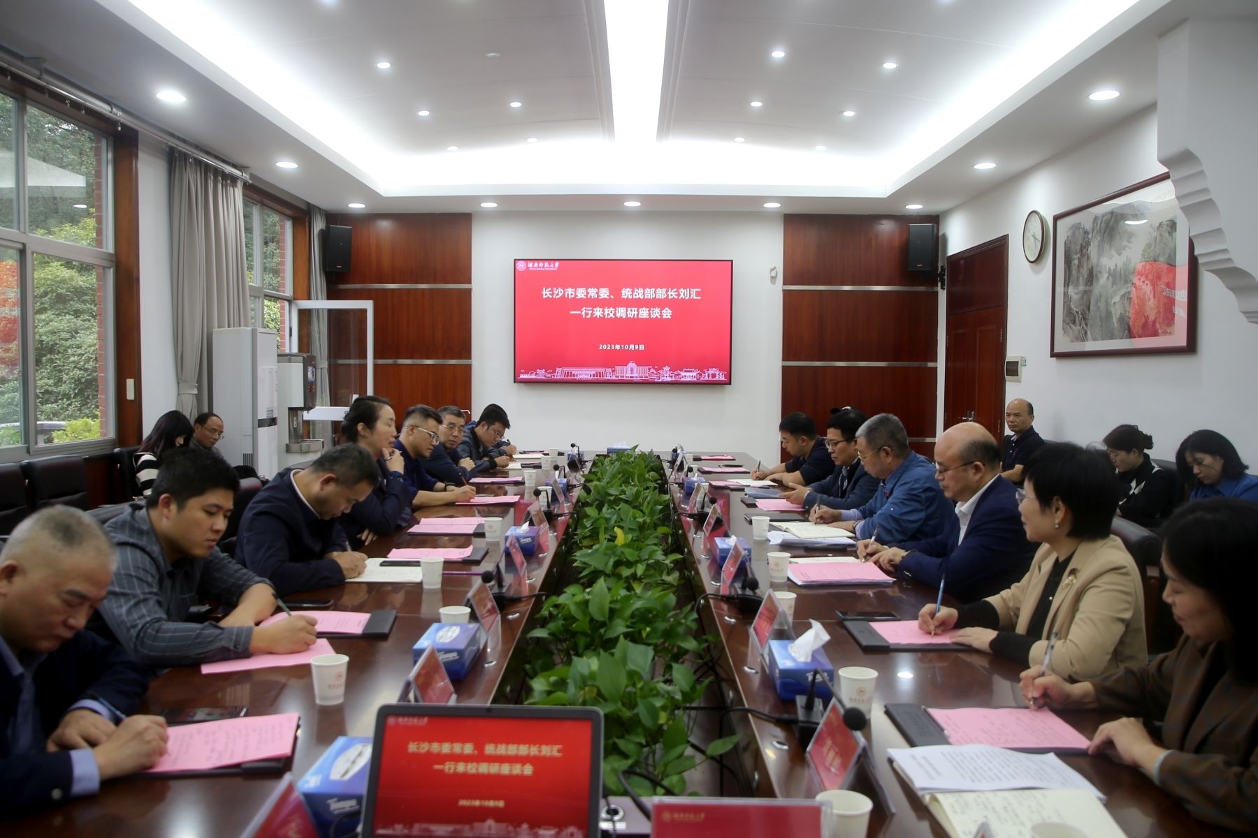 劉匯對我校統戰工作表示充分的肯定。她指出,長沙正在積極爭創全國民族團結示范市,要進一步濃厚氛圍,充分發揮我校統戰理論研究的優勢,突出民族工作特色,加強校地交流合作,促進各民族師生交往交流交融,推動民族團結進步創建工作取得實效。她強調,要以鑄牢中華民族共同體意識為主線,推動新時代黨的民族工作高質量發展,為實現中華民族偉大復興的中國夢、助力長沙全力建設全球研發中心城市作出更大貢獻。
