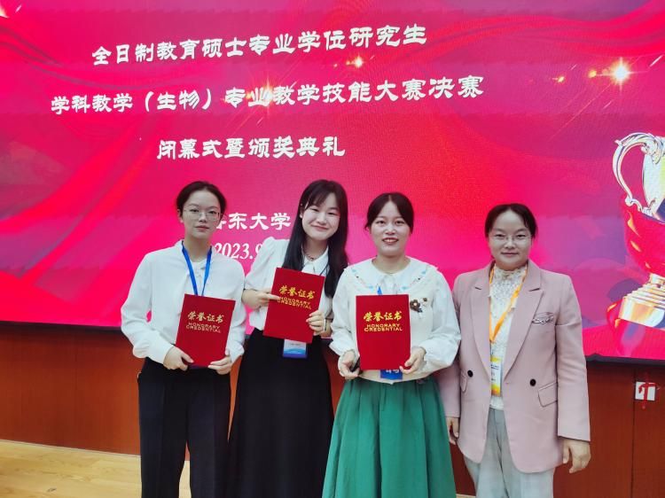 學(xué)校長期致力于培養(yǎng)擁有先進(jìn)教育理念、寬廣教育視野以及深厚教育情懷的未來卓越教師。學(xué)生在大賽中的出色表現(xiàn)和優(yōu)異成績,充分展示了教育碩士扎實的專業(yè)知識和較高的教學(xué)技能水平,生動展現(xiàn)了我校生命科學(xué)學(xué)院學(xué)科教學(xué)(生物)專業(yè)在學(xué)生培養(yǎng)和實踐教學(xué)上的重要成果。