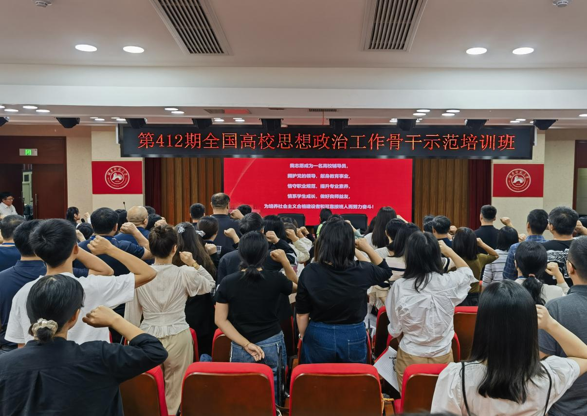 (通訊員 黃揚涵 肖晶晶 曾瑞格 任柯樺)10月18日上午,由我校承辦的第412期全國高校思想政治工作骨干示范培訓班開班儀式于中和樓舉行。省委教育工委宣傳部部長、省教育廳思政處處長甘文波,我校副校長王輝出席儀式。