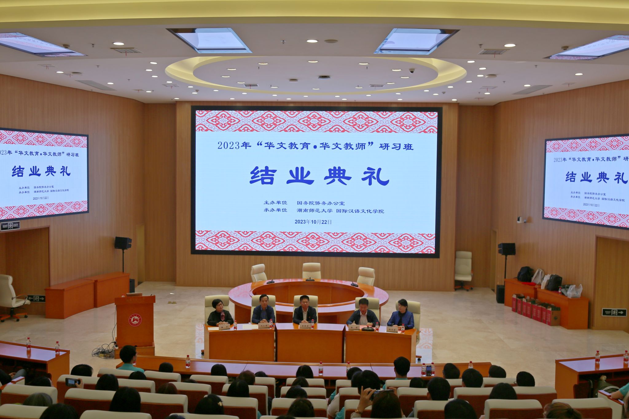 (通訊員 黃林鍵)10月22日上午,由國(guó)務(wù)院僑務(wù)辦公室主辦,我校承辦的2023年“華文教育·華文教師”研習(xí)班結(jié)業(yè)典禮在我校圖書館報(bào)告廳舉行。湖南省僑務(wù)辦公室僑務(wù)事務(wù)處副處長(zhǎng)馮小明,我校副校長(zhǎng)唐賢清出席儀式。典禮由國(guó)際漢語文化學(xué)院副院長(zhǎng)沈敏主持。