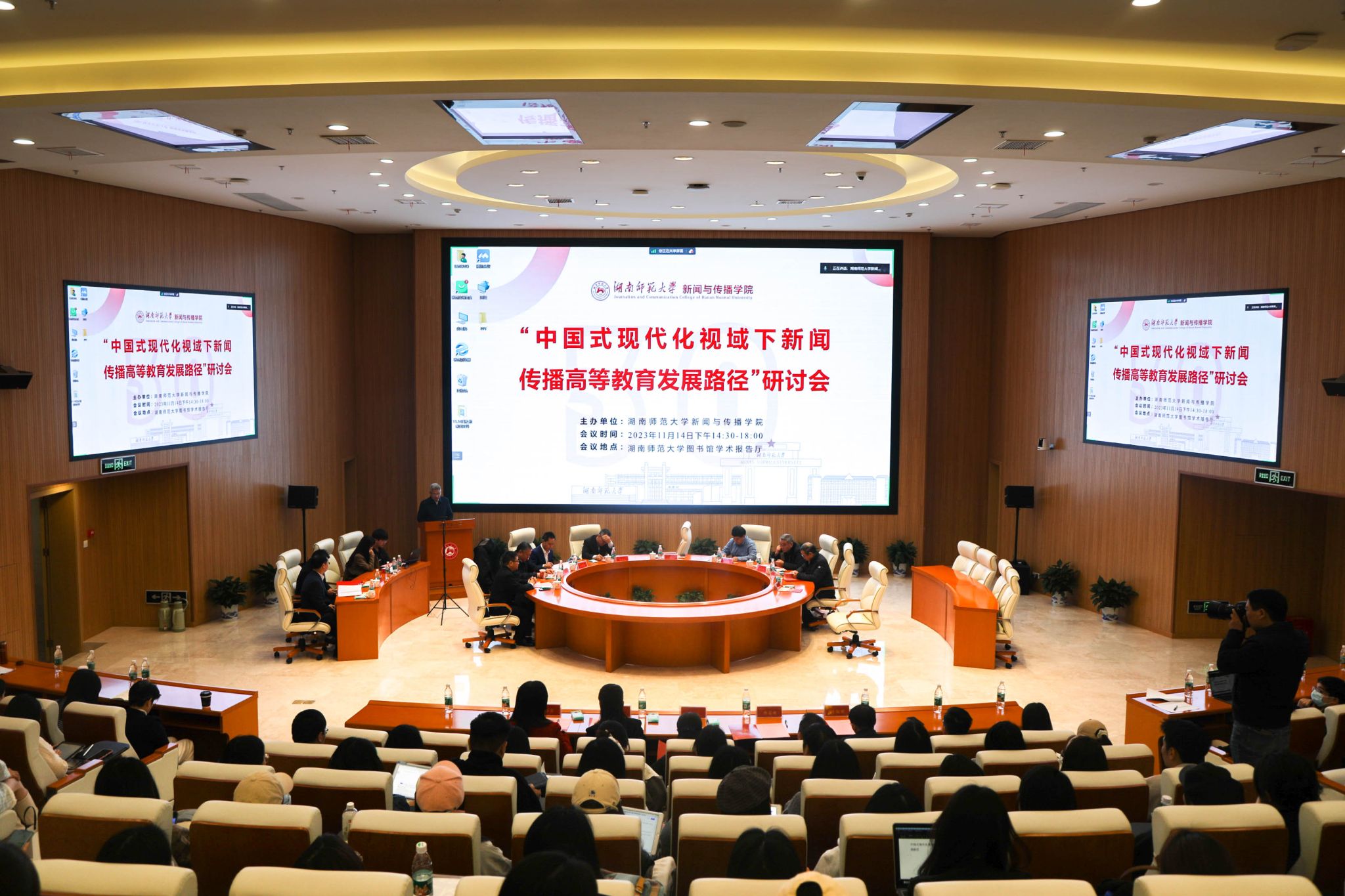 (記者 劉偲睿 項和烽)11月14日,我校新聞與傳播學院主辦的“中國式現代化視域下新聞傳播高等教育發展路徑”學術研討會在圖書館學術報告廳召開。研討會以線上線下同步方式進行,來自中國人民大學、中國傳媒大學、復旦大學、清華大學、北京大學等十余所大學的新聞與傳播學院院長以及專家學者參會。我校副校長唐賢清出席開幕式。開幕式由我校新聞與傳播學院黨委書記沈賢嵐主持。