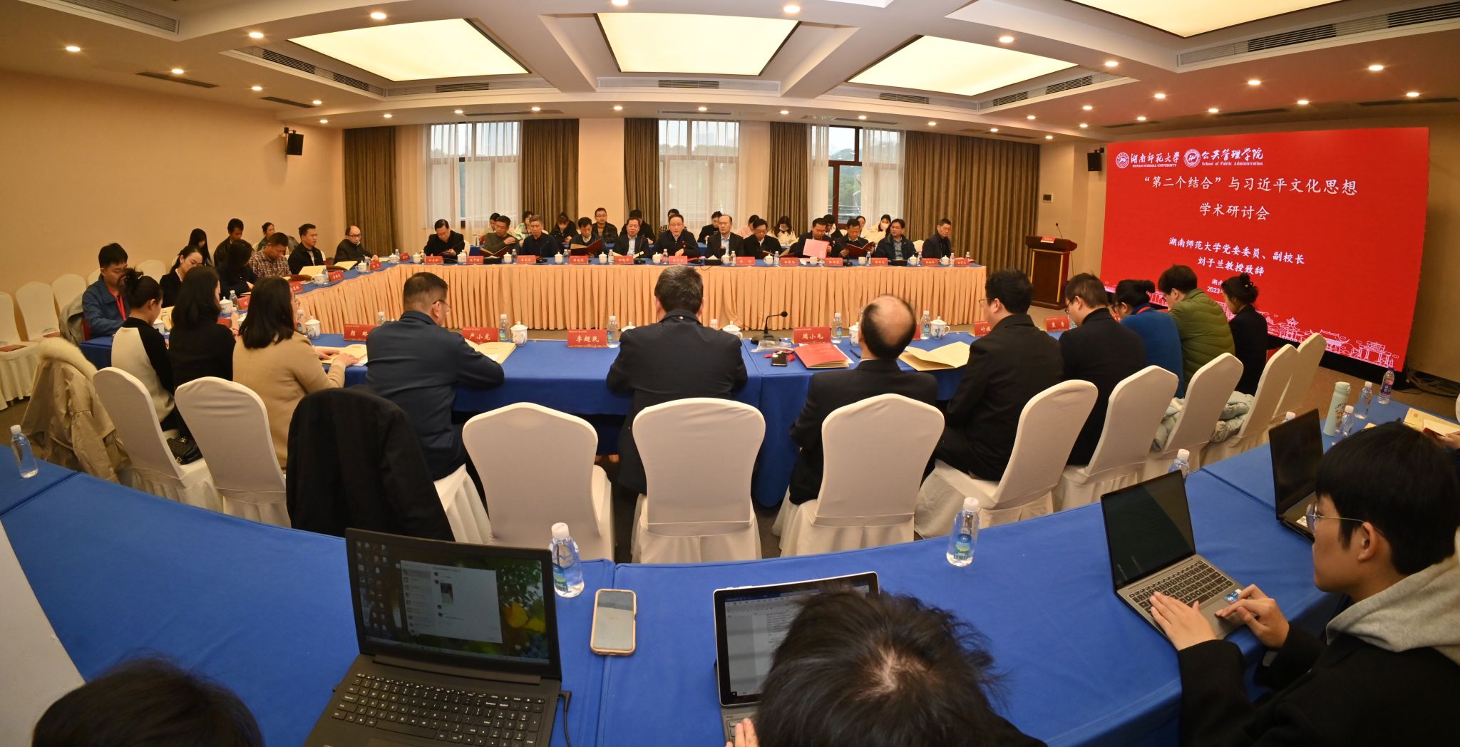 陳瑞來致辭。他對專家學(xué)者們的到來表示歡迎,對研討會的召開表示祝賀。他表示,我校公共管理學(xué)院作為湖南省的一塊思想高地和學(xué)術(shù)重鎮(zhèn),要擔當起“先聲地”的使命任務(wù),在“第二個結(jié)合”的研究闡釋上走在前列、作好示范。