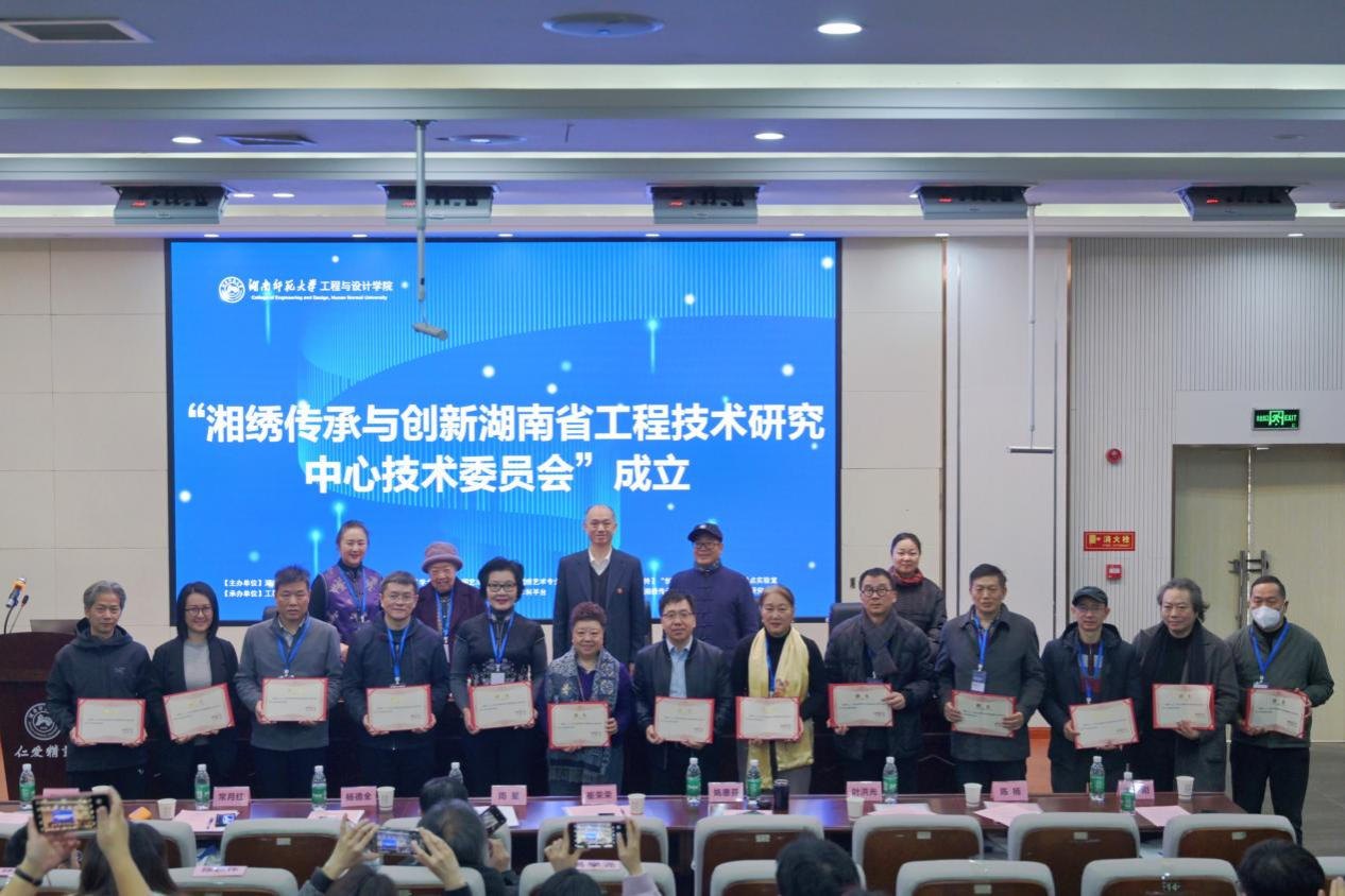 我校科技處副處長余自娥宣布“湘繡傳承與創新”湖南省工程技術研究中心第二屆技術委員會成立,與會領導頒發委員聘書。