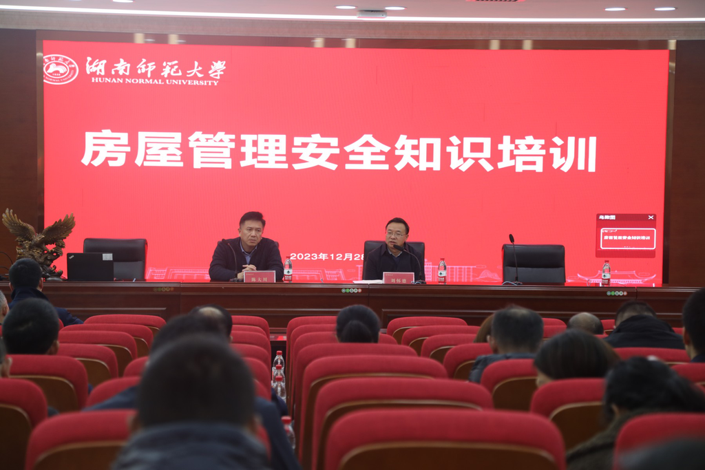 (記者 李影 胡欣睿)12月28日下午,我校在中和樓342報(bào)告廳召開(kāi)學(xué)校房屋管理安全知識(shí)培訓(xùn)會(huì)。副校長(zhǎng)劉懷德、湖南大學(xué)土木工程學(xué)院教授陳大川出席本次會(huì)議。會(huì)議由房地產(chǎn)管理處處長(zhǎng)熊劍峰主持。