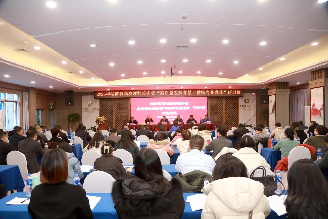 (供稿 高師培訓中心)近日,由湖南省教育廳主辦、我校高等學校師資培訓中心承辦的2023年湖南省高校教師培訓者“高質量發展背景下教師專業成長”高級研討班順利開班。湖南省教育工委委員、教育廳黨組成員、總督學郭建國,我校副校長蔣新苗出席活動。開班儀式由我校高等師資培訓中心常務副主任彭運石主持。