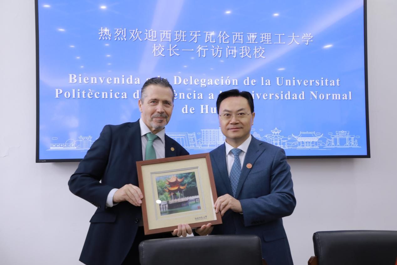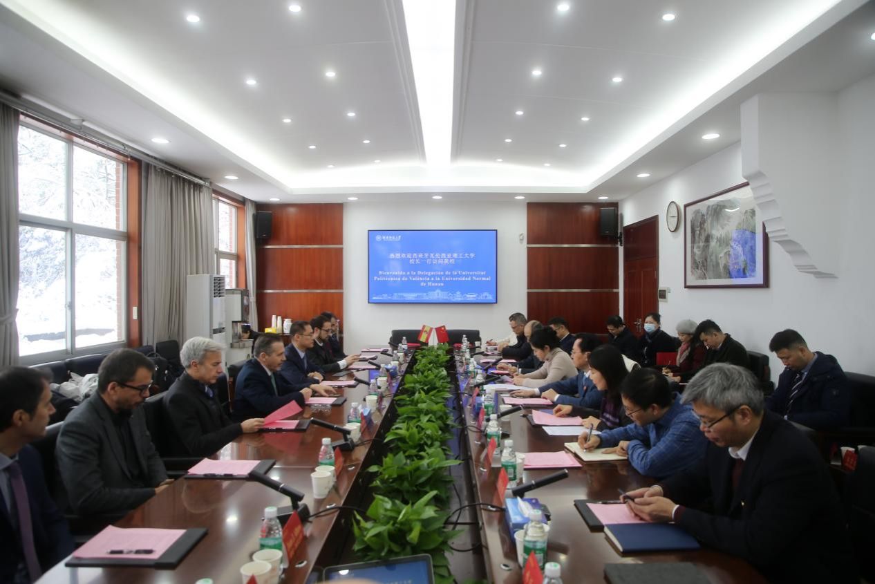 西班牙瓦倫西亞大學、湖南省商務廳、岳麓山大科城及我校相關單位負責人參加會談。