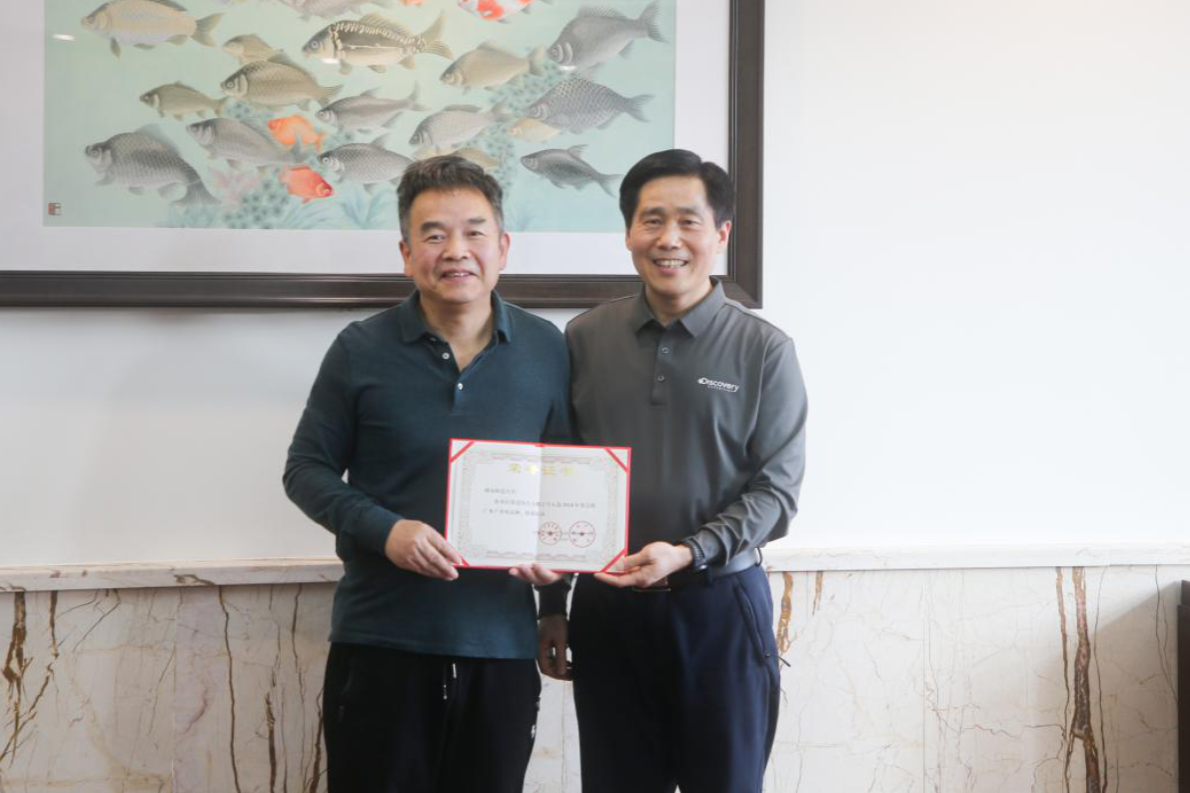劉少軍院士團隊報送的合方鯽2號入選2024年重點推廣水產養殖品種,何建湘代表全國水產技術推廣總站為劉少軍授牌。