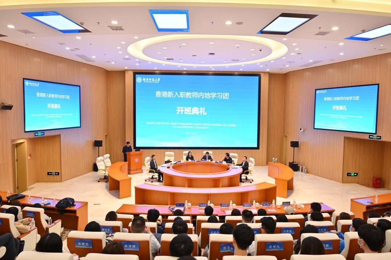(供稿 教科院)3月25日下午,由中央人民政府駐香港特別行政區聯絡辦公室、教育部和湖南省委宣傳部、湖南省教育廳指導,香港特別行政區政府教育局主辦,我校教育科學學院承辦的“香港新入職教師內地學習團(長沙)第三期”(以下簡稱“學習團”)開班典禮在我校舉行。香港特別行政區教育局學校領導及專業發展組高級專業發展主任羅嘉恩,省委教育工委委員、省教育廳黨組成員朱正華,我校副校長唐賢清出席開班典禮。典禮由教育科學學院院長劉鐵芳主持。