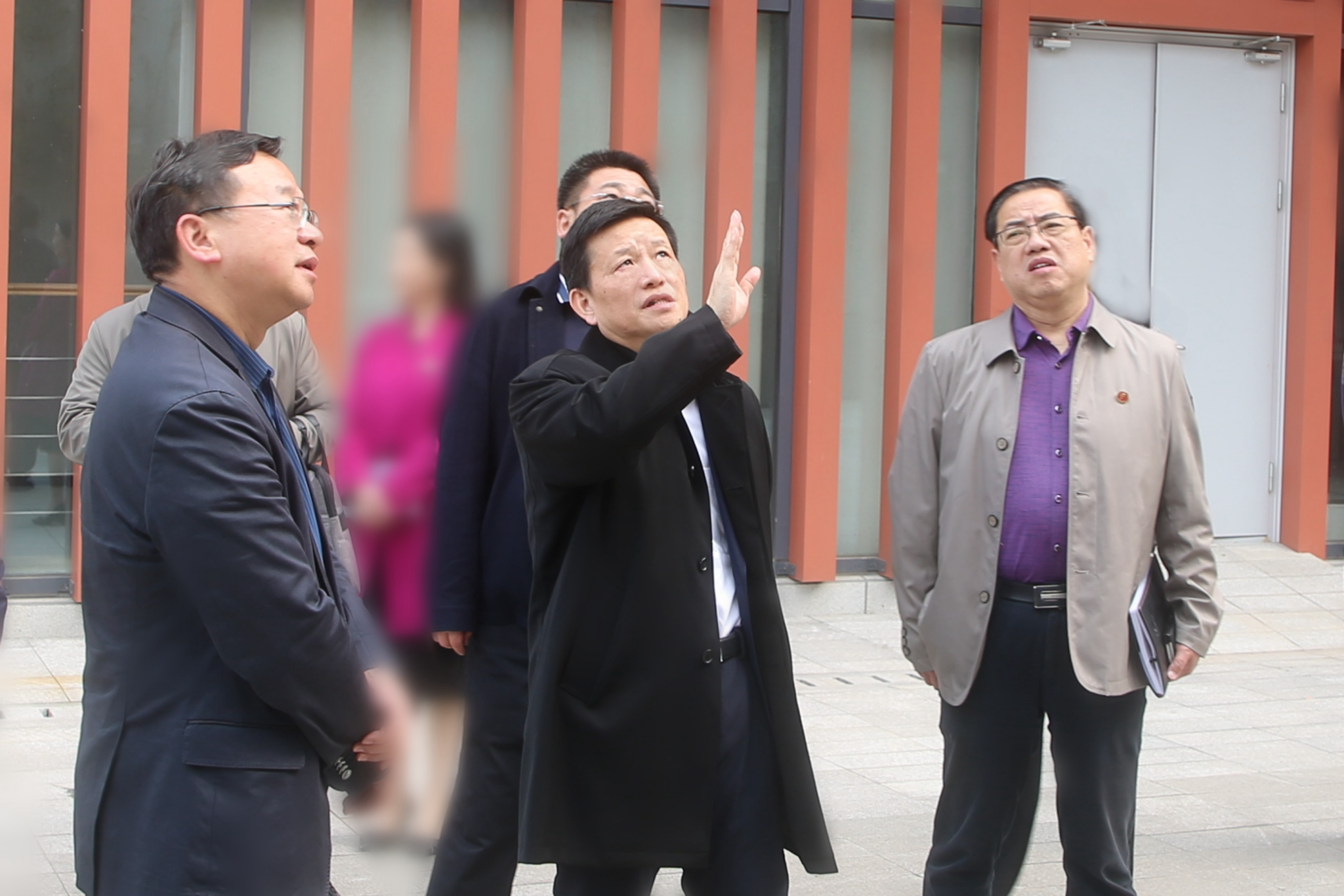 蔣洪新一行來到教學科研綜合樓,走訪了教師教育展示廳、會議室、接待室等地,詳細了解各區域設施建設以及信息化建設情況。他聽取了后勤處、基建處、教師教育學院、信息化中心等負責人關于場地建設情況的匯報,與他們進行了深入細致的交流,并對工作人員的辛勤付出、整體項目建設的有序推進表示了肯定。