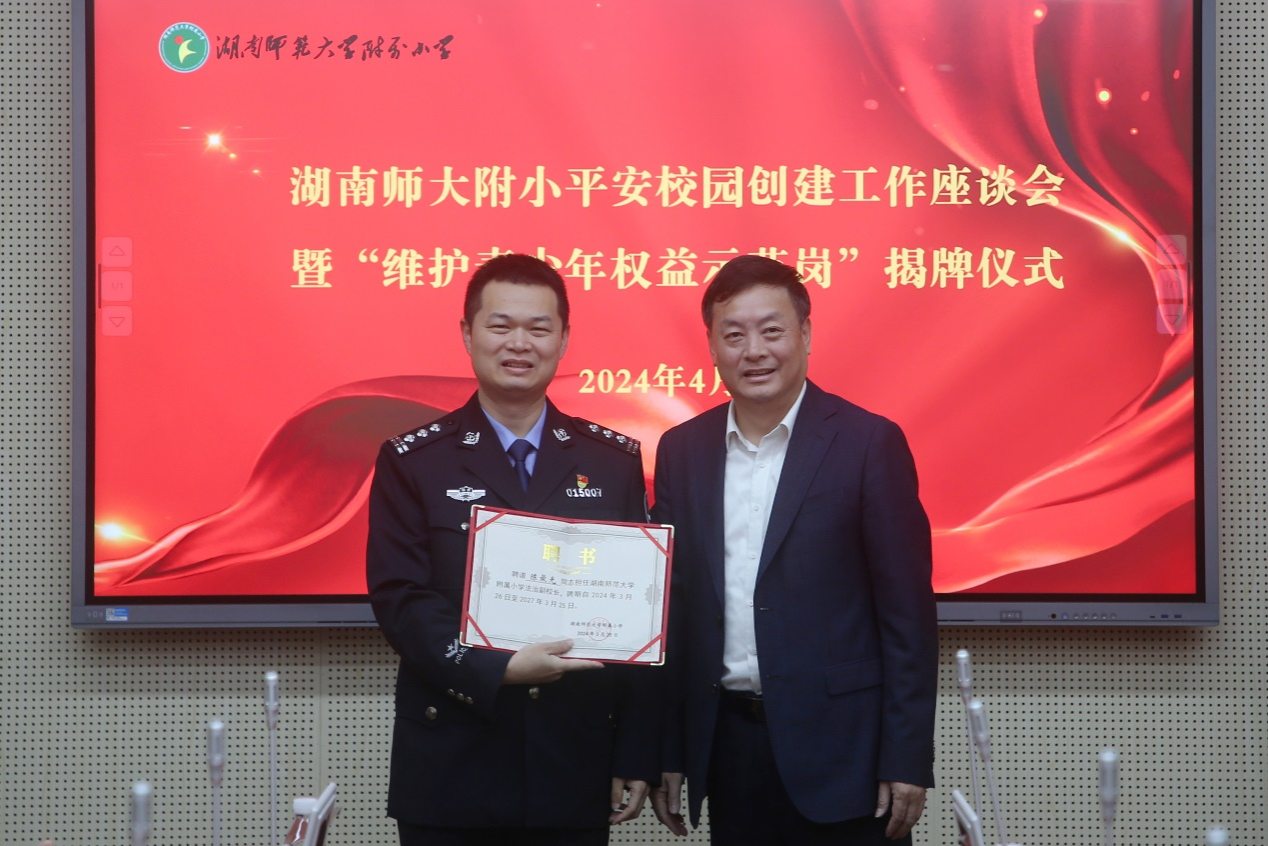 陳最光表示,“維護青少年權益示范崗”是多方共同關愛保護未成年人健康成長的聯絡平臺,桔子洲派出所必將舉全所之力守護校園平安,助力湖南師范大學與附小穩定高質量發展。