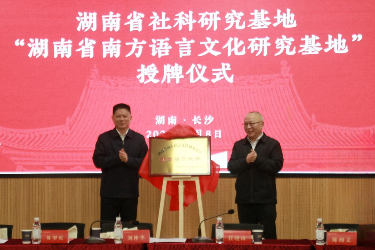 隨后,任曉山代表湖南省委宣傳部向我校“湖南省南方語言文化研究基地”授牌。