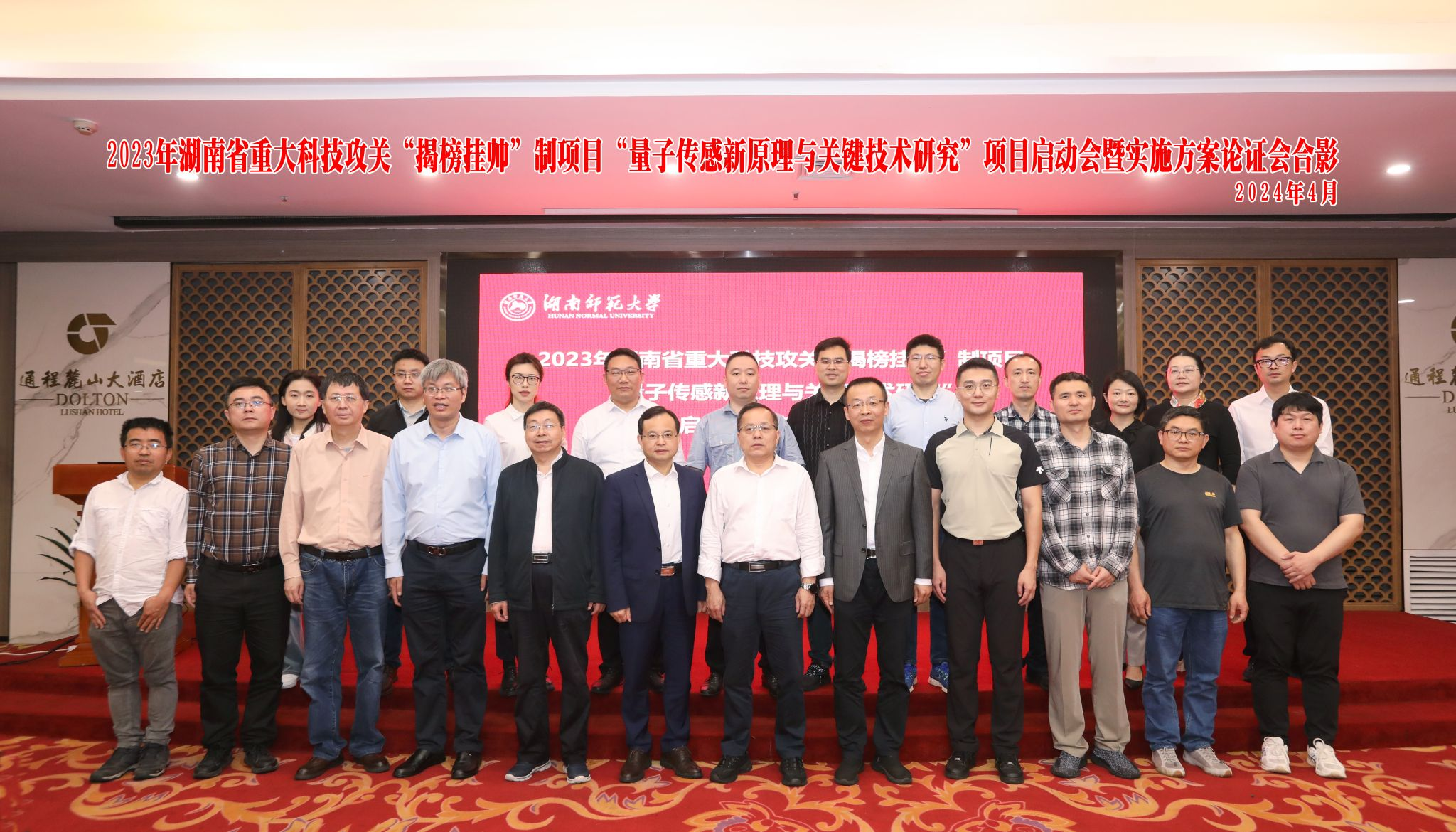 (供稿 彭美瑜)4月16日, 2023年湖南省重大科技攻關“揭榜掛帥”制項目“量子傳感新原理與關鍵技術研究”項目啟動會暨實施方案論證會在長沙召開。我校副校長潘安練出席會議,會議由我校科技處處長唐東升主持。