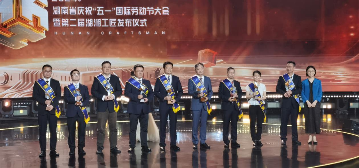 (供稿 校工會)4月29日,湖南省慶祝“五一”國際勞動節大會暨第二屆湖湘工匠發布儀式在長沙舉行。省委副書記李殿勛出席大會并講話。本次大會共表彰100名品格優秀、技能高超、矢志創新、貢獻卓著的職工,其中10名“湖湘杰出工匠”、90名“湖湘工匠”,我校覃欽博教授喜獲“湖湘工匠”。副校長王輝受邀參加大會。