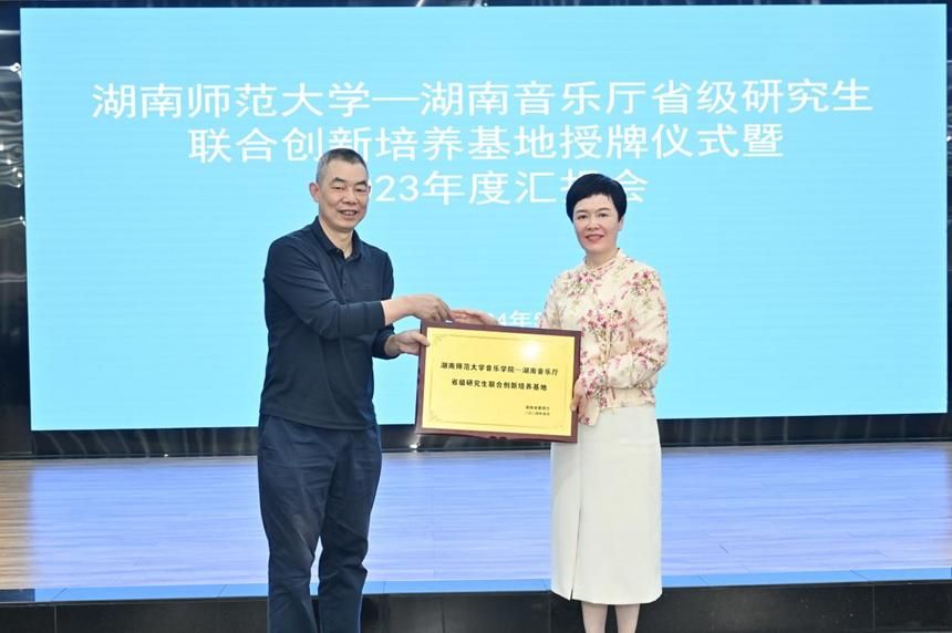 據悉,湖南師范大學—湖南音樂廳省級研究生聯合培養創新基地于2022年12月30日獲批為湖南省省級研究生聯合培養基地。基地合作單位湖南省文化館(原湖南省群眾藝術館)成立于1956年7月,隸屬于湖南省文化和旅游廳,是組織指導群眾開展文化活動的公益性事業單位。基地立足“三高四新”戰略,以“弘揚湖湘文化,服務地方經濟”為宗旨,依托湖南省文化館音樂廳優質資源,實踐“3P+2R”創新培養模式,整合并活化湖南的非遺、媒體、高校、企業及政府資源,以形成更加完善的資源共享,培養音樂拔尖創新人才。