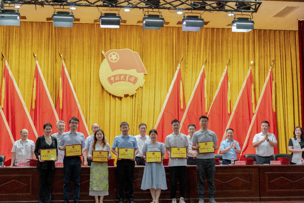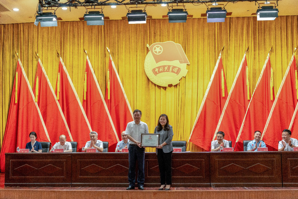 大會在雄壯的國歌聲中拉開序幕。校團委書記陳天嵩作工作匯報。學生工作部部長魯良宣讀《關于表彰2023-2024年度五四團內先進集體和優秀個人的決定》。主席臺就坐領導為獲獎先進團體及優秀個人頒獎。“五四紅旗團委”獲獎代表旅游學院團委書記龔曦、“芙蓉學子·榜樣力量”獲獎代表湖南師范大學赴沅陵縣產業振興博士服務團肖鑫宇同學先后發言。