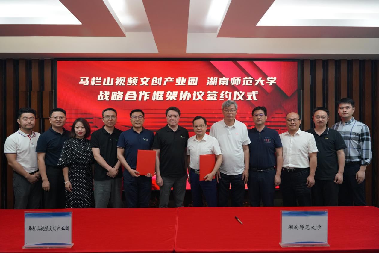在雙方人員共同見證下,胡朝暉、潘安練分別代表雙方簽署《馬欄山(長沙)視頻文創園管理委員會與湖南師范大學戰略合作框架協議》。根據戰略框架協議,雙方將在聯合培養創新人才、共同推動產業發展、開展科學研究和技術攻關等方面展開全方位合作。