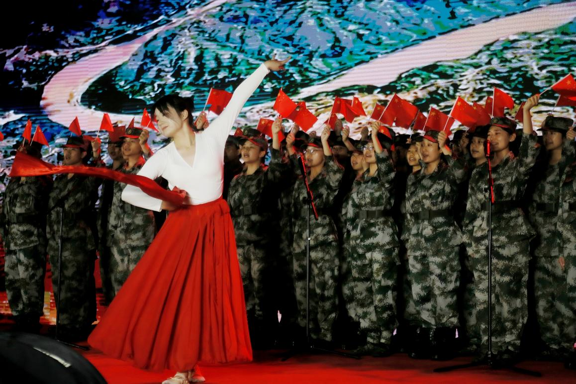 在舞臺(tái)上,各民族同學(xué)用多樣的形式表達(dá)著對(duì)祖國與黨的無盡熱愛與感恩,吟誦著對(duì)湖湘熱土的贊美,展現(xiàn)了中華民族多彩的文化,加深了師生對(duì)中華民族共同體的認(rèn)同。