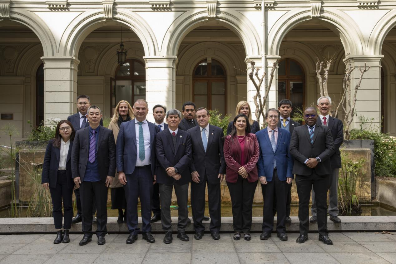 在智利訪問期間,蔣新苗一行出席了由智利天主教大學承辦的世界大學校長協會半年度會議,來自墨西哥、日本、美國等國家的30余所大學校長出席會議。會議通報了協會上半年在全球組織的重要活動以及下半年活動計劃,與會代表共同探討了后疫情時代高等教育領導力挑戰,并指出,在后疫情時代,高等教育教學模式、國際交流、行政管理都發生重大轉型,學生需求也在不斷發生變化,高等教育的領導者需要重新審視其既定的教育和政策模式,以可持續發展的視角瞄準高等教育發展,以與時俱進的眼光關注學生需求,以數字化轉型推動高等教育創新,以高等教育國際合作維護全球共同利益。會后,與會代表參訪了拉美地區頂尖私立大學智利天主教大學,蔣新苗與該大學校長伊格納西奧·桑切斯親切交流,并互贈禮品。