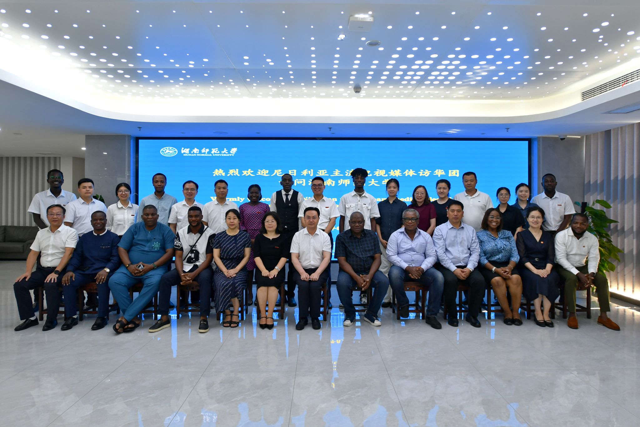 劉仲華代表學校對代表團一行的到來表示熱烈歡迎,并簡要介紹了我校國際交流與合作情況。他表示,中非文化交流的歷史源遠流長,“一帶一路”倡議賡續中非情誼,中非經貿博覽會等盛會也進一步深化了雙方的合作。我校一直以來高度重視國際交流與合作,目前與6所非洲大學和機構建立了合作關系。他表示,此次查爾斯先生率團來訪,對于夯實中尼兩國傳統友誼、深化中非高校交流合作具有十分重要的意義。希望尼日利亞媒體朋友能夠真實、全面、客觀地分享關于此次中國之旅的體驗,積極傳播中國形象,讓更多尼日利亞及非洲友人認識中國、了解湖南、走進湖南師范大學,進一步加強我校與尼日利亞高校的學術與人文交流,在人才培養、科學研究等方面爭取更大更新的共贏空間,合力開啟兩國高等教育發展新篇章。